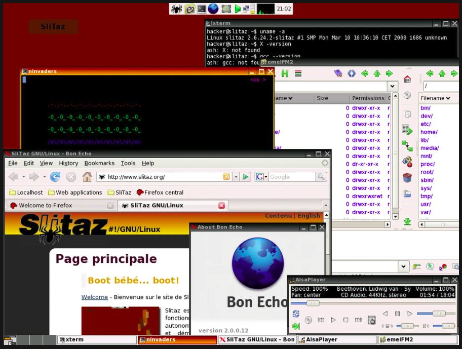Jedną z najmocniejszych stron SliTaz jest tryb Live. System może być uruchamiany z: