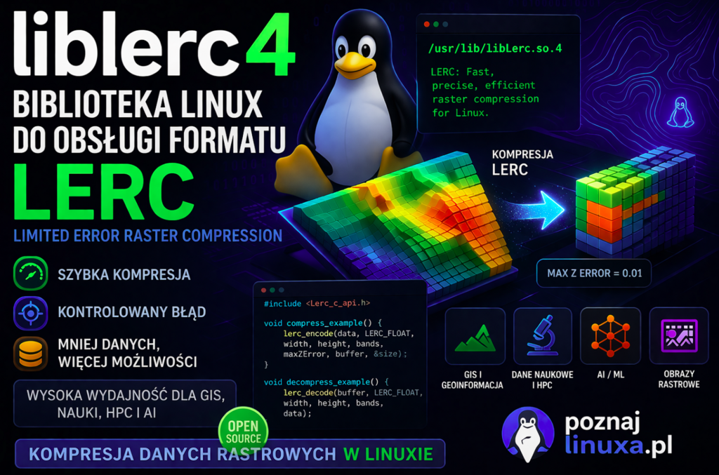 liblerc4 – biblioteka współdzielona w Linux do szybkiej kompresji danych LERC – ang. Limited Error Raster Compression