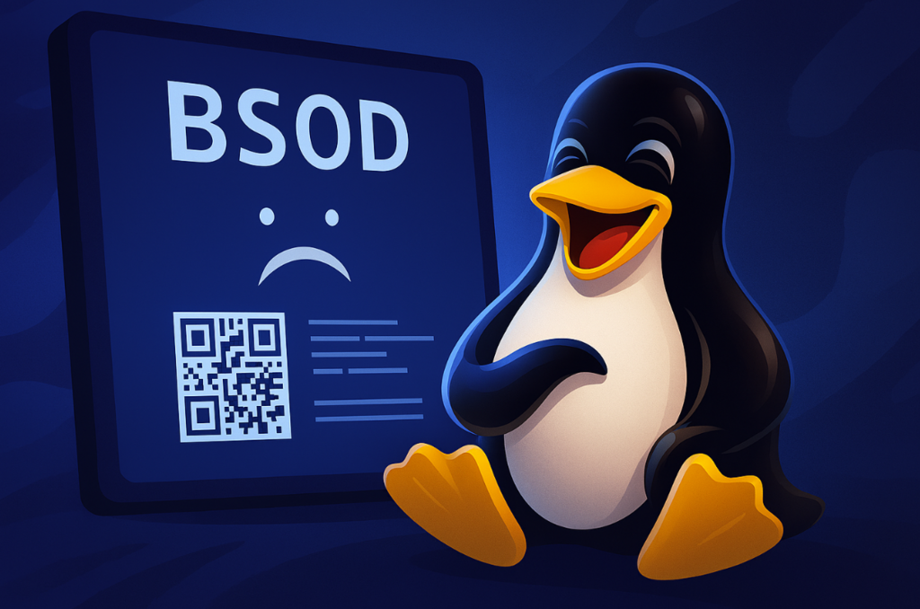 Jeśli kiedykolwiek pracowałeś na komputerze z systemem M$, istnieje duża szansa, że spotkałeś się z legendarnym „Blue Screen of Death” — niebieskim ekranem, który pojawia się nagle, bez ostrzeżenia, i oznacza jedno: system padł. Dla wielu użytkowników był to moment frustracji, straty danych i bezsilności. Ale czy w świecie Linuxa istnieje coś podobnego? Czy pingwin też potrafi zamarznąć na niebiesko?