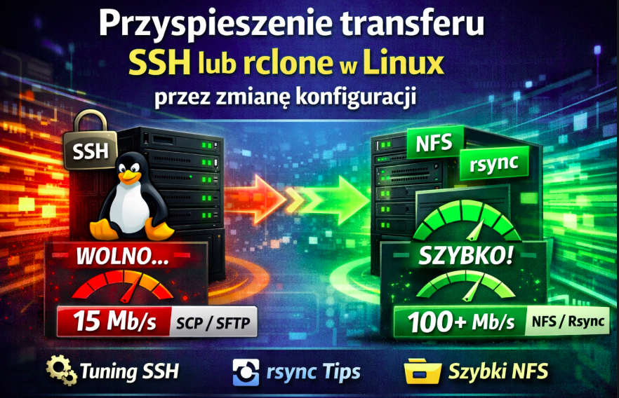 W tym artykule pokażę, jak znacząco przyspieszyć transfer danych przez SSH oraz rclone, korzystając z prostych, ale skutecznych zmian konfiguracyjnych.