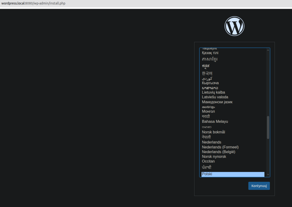 Dodaj do pliku hostów roboczą domenę wordpress.local