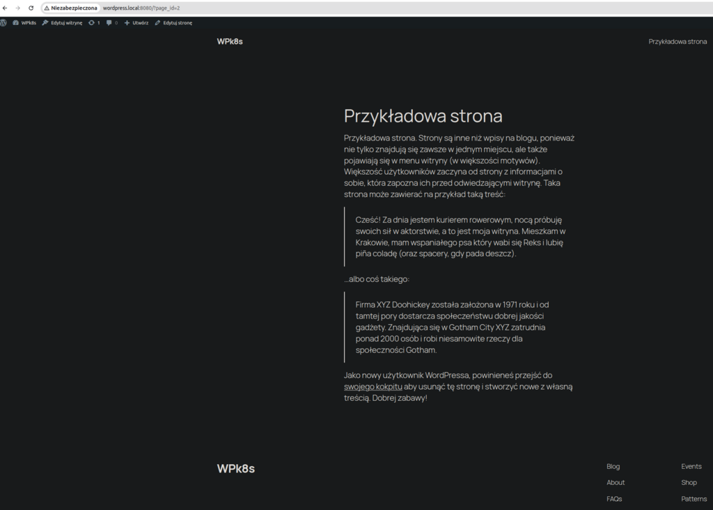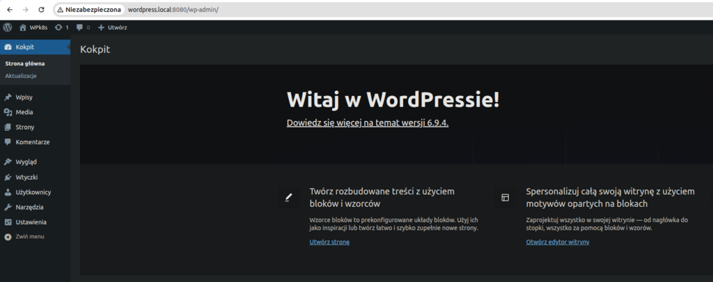 Otwórz przeglądarkę i zacznij cieszyć się WordPresem na klastrze kubernetes 🙂