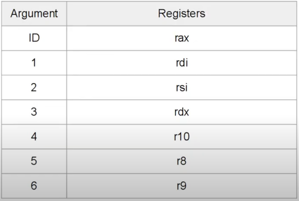 (na architekturze x86_64), przekazując numer syscalla w rejestrze rax